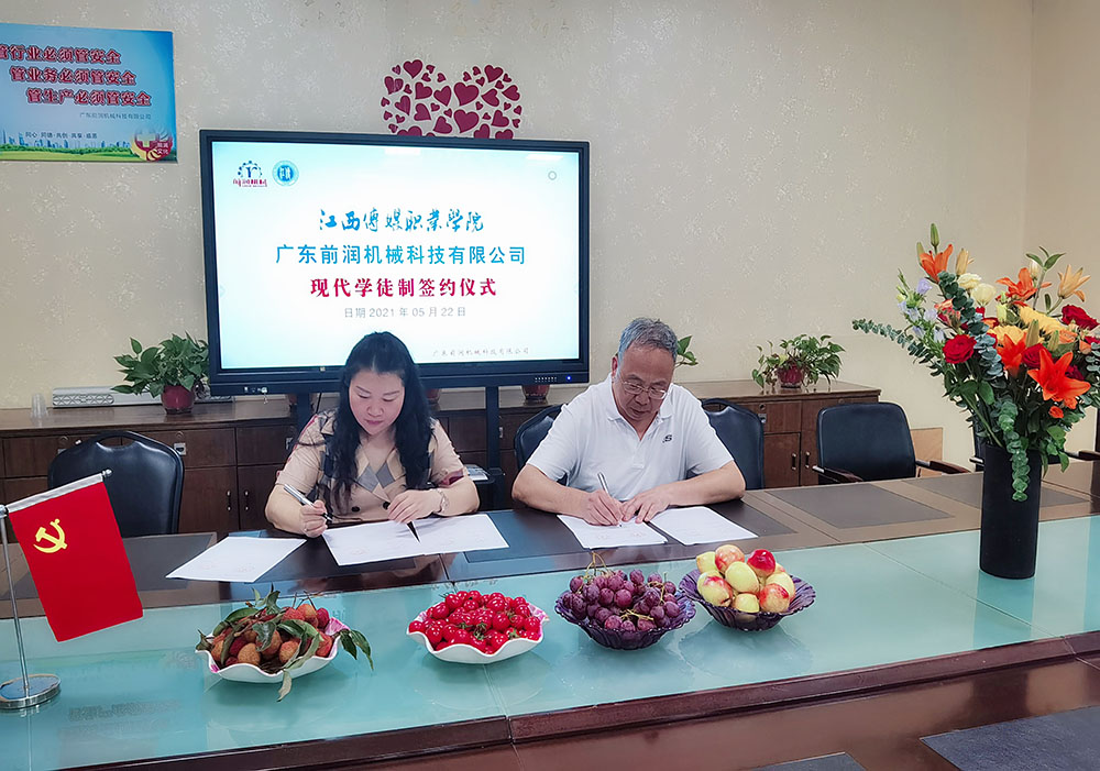 2021年05月22日,江西傳媒職業學院與廣東前潤機械科技有限公司舉行了校企合作(現代“學徒制”人才培養項目)簽約儀式(廣東前潤機械舉行校企合作簽約儀式)。