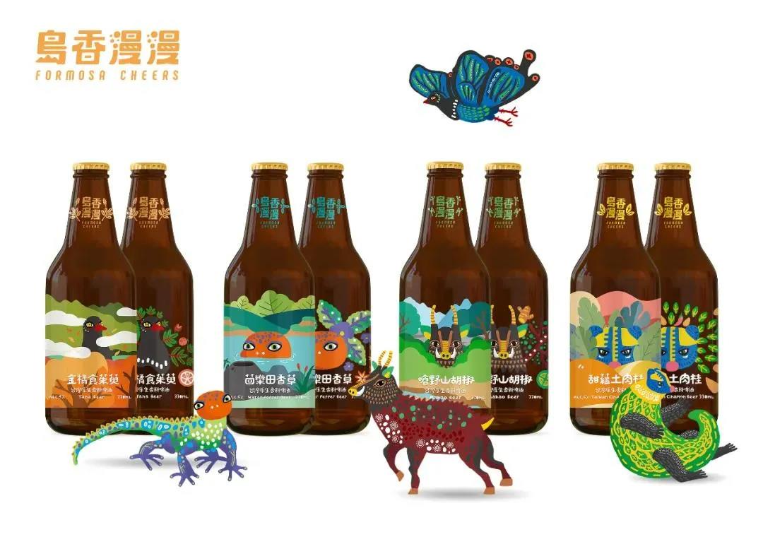 作品點評:該產品標簽在視覺設計上以中國臺灣特有的動物為主題,將視覺創意結合成獨特多元的臺灣神獸,如白鼻心+穿山甲、山羌+臺灣野豬、山椒魚+呂氏攀蜥、烏鴉鳳蝶+臺灣藍雀。不同的神獸藏身在不同的自然環境之中,每只神獸身上會帶有香料本身的香氣特色。玻璃酒瓶的包裝設計運用了彩券刮刮樂的方式,設計了二層瓶標,當消費者拿起啤酒瓶時,就如同在叢林探險一般,可以拿出身邊的銅板,刮除遮蔽神獸若隱若現的生長環境之后,就能清楚顯現神獸原始的樣貌以及臺灣原生香料的圖像。此外,在鋁罐啤酒包裝設計上,將豐富的色彩與圖像環繞在鋁罐上,用大面積的自然環境與神獸個性展現啤酒獨特的不同口味感受。