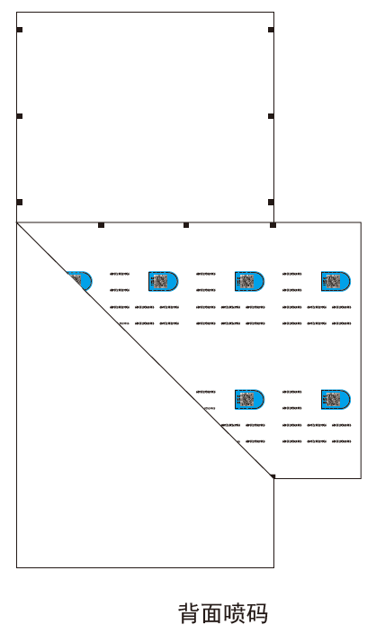 面層的背面噴印關(guān)聯(lián)變碼組合,然后,在正面噴印關(guān)聯(lián)碼,自動(dòng)復(fù)合,聯(lián)線完成,自動(dòng)翻轉(zhuǎn)前后校對(duì)